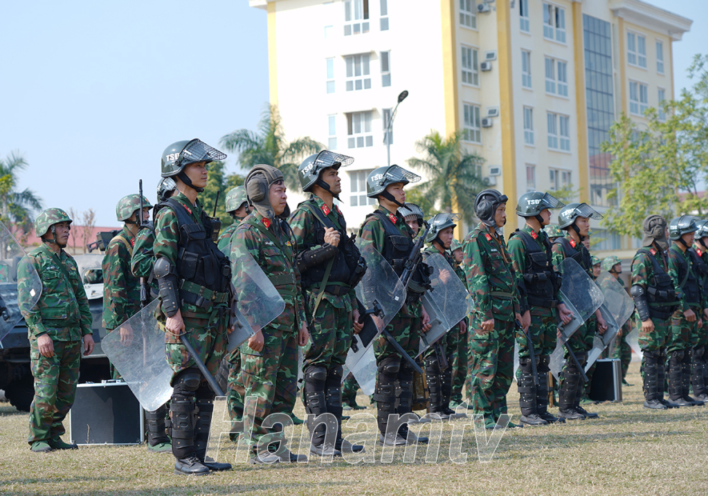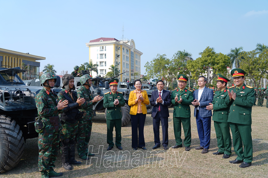 Đồng chí Bí thư Tỉnh ủy Lê Thị Thủy và các đại biểu dự lễ.Cán bộ, chiến sỹ lực lượng vũ trang tỉnh trực sẵn sàng chiến đấu.