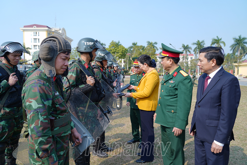 Tới thăm, kiểm tra công tác trực sẵn sàng chiến đấu tại Bộ CHQS tỉnh, đồng chí Bí thư Tỉnh ủy, Chủ tịch HĐND tỉnh, Bí thư Đảng ủy Quân sự tỉnh Lê Thị Thủy ghi nhận biểu dương những kết quả đạt được trong thực hiện nhiệm vụ của Bộ CHQS tỉnh; cán bộ, chiến sỹ lực lượng vũ trang của tỉnh năm 2024 và chia sẻ với những vất vả, hy sinh thầm lặng của cán bộ, chiến sỹ lực lượng vũ trang tỉnh trong những ngày Tết đến, Xuân về vẫn không được nghỉ ngơi, tiếp tục trực, sẵn sàng chiến đấu để bảo đảm sự bình yên cho Nhân dân đón Tết, vui Xuân.