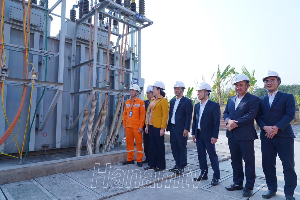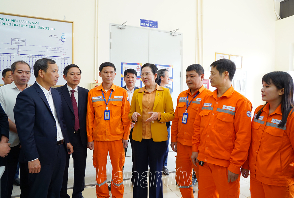 Tới thăm, kiểm tra công tác trực sản xuất tại Trạm biến áp 11kV Châu Sơn, sau khi nghe lãnh đạo Công ty Điện lực Hà Nam báo cáo nhanh kết quả sản xuất kinh doanh, kế hoạch trực sản xuất trong dịp Tết Nguyên đán của ngành điện, đồng chí Bí thư Tỉnh ủy Lê Thị Thủy ghi nhận, đánh giá cao Công ty Điện lực Hà Nam trong năm qua đã rất nỗ lực cố gắng để hoàn thành tốt nhiệm vụ, góp phần vào sự phát triển chung của tỉnh.