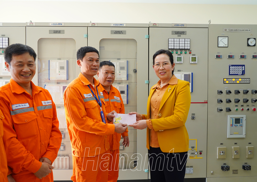 Đồng chí Bí thư Tỉnh ủy tặng quà công nhân viên, người lao động làm việc tại Trạm biến áp 110 kV Châu Sơn, Phủ Lý.Đồng chí Bí thư Tỉnh ủy lì xì đầu xuân cho các công nhân viên ngành điện.