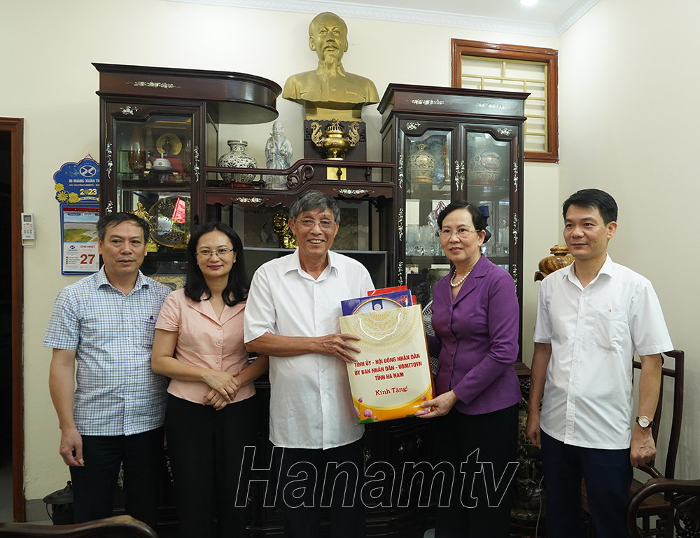 Đồng chí Bí thư Tỉnh ủy Lê Thị Thủy thăm, tặng quà các đồng chí nguyên lãnh đạo chủ chốt của tỉnh qua các thời kỳ