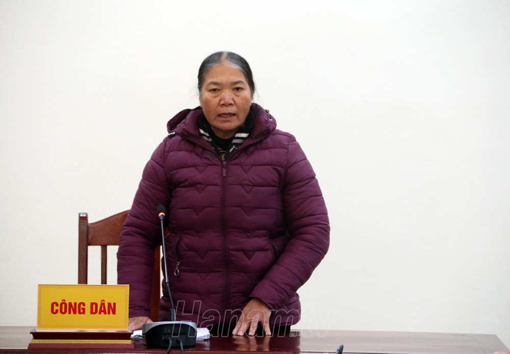 Tại hội nghị, công dân Quyền Thị Sang (trú tại thôn 4, Tái Kênh, xã Đinh Xá, thành phố Phủ Lý) đề nghị cơ quan có thẩm quyền xem xét, giải quyết cấp Giấy chứng nhận quyền sử dụng đất (QSDĐ) cho gia đình bà đối với phần diện tích 568m2 do ông Mai Đắc Hiệp (bố chồng bà Sang) để lại tại thửa đất số 106, từ bản đồ số 18 (bản đồ xã Đinh Xá, thành phố Phủ Lý).