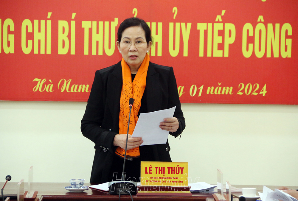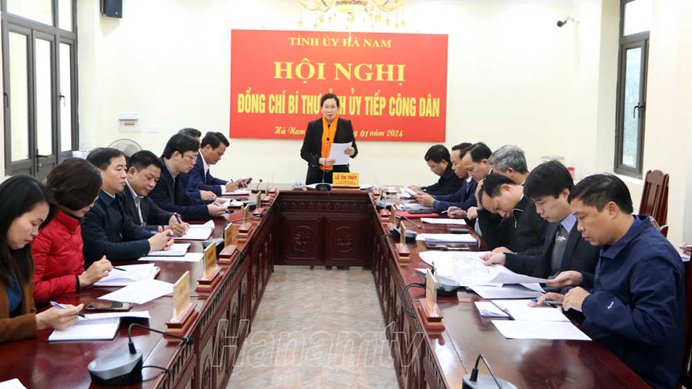 Sáng 24/1, đồng chí Lê Thị Thủy, Ủy viên Trung ương Đảng, Bí thư Tỉnh ủy, Chủ tịch HĐND tỉnh chủ trì buổi tiếp công dân định kỳ tháng 1/2024. Cùng dự có các đồng: Đào Đình Tùng, Ủy viên Ban Thường vụ Tỉnh ủy,Trưởng Ban Nội chính Tỉnh ủy; Nguyễn Đức Vượng, Tỉnh ủy viên, Phó Chủ tịch UBND tỉnh; đại diện lãnh đạo các sở, ban, ngành liên quan; lãnh đạo UBND thành phố Phủ Lý, lãnh đạo xã Đinh Xá.
