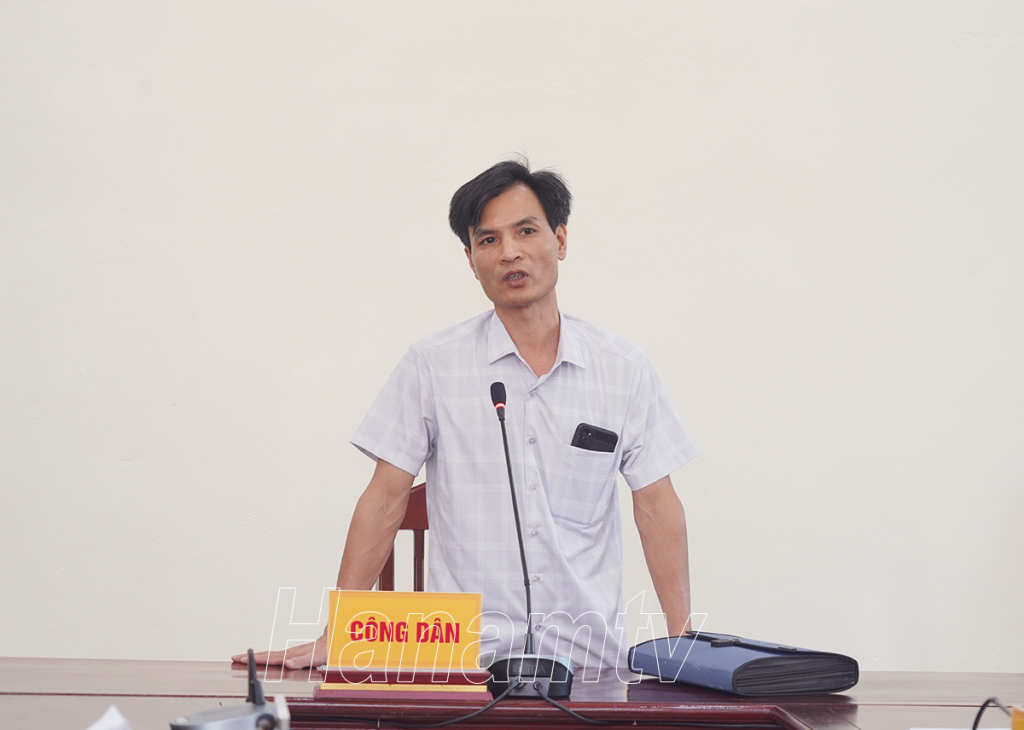 Công dân Lại Văn Lăng (trú tại Thôn 4, xã Liêm Chung, thành phố Phủ Lý) trình bày kiến nghị tại hội nghị tiếp công dân.