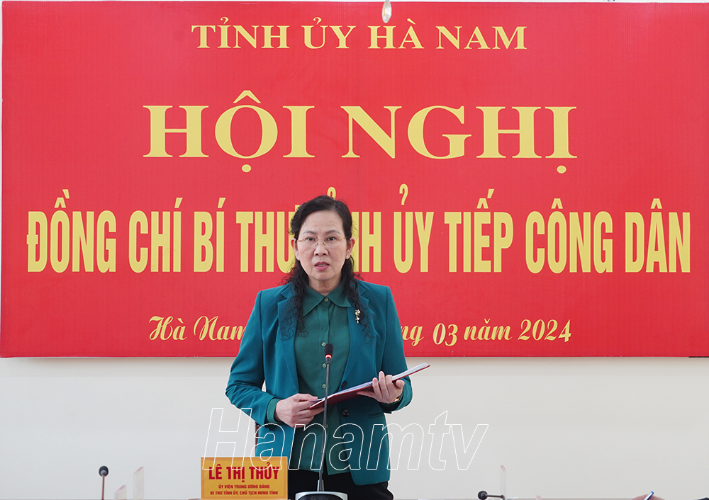 Sáng 21/3, đồng chí Lê Thị Thủy, Ủy viên Trung ương Đảng, Bí thư Tỉnh ủy, Chủ tịch HĐND tỉnh chủ trì buổi tiếp công dân định kỳ tháng 3/2024. Cùng dự có các đồng: Đào Đình Tùng, Ủy viên Ban Thường vụ Tỉnh ủy, Trưởng Ban Nội chính Tỉnh ủy; Nguyễn Đức Vượng, Tỉnh ủy viên, Phó Chủ tịch UBND tỉnh; đại diện lãnh đạo các Ban, sở ngành liên quan, lãnh đạo UBND thị xã Duy Tiên và phường Đồng Văn.