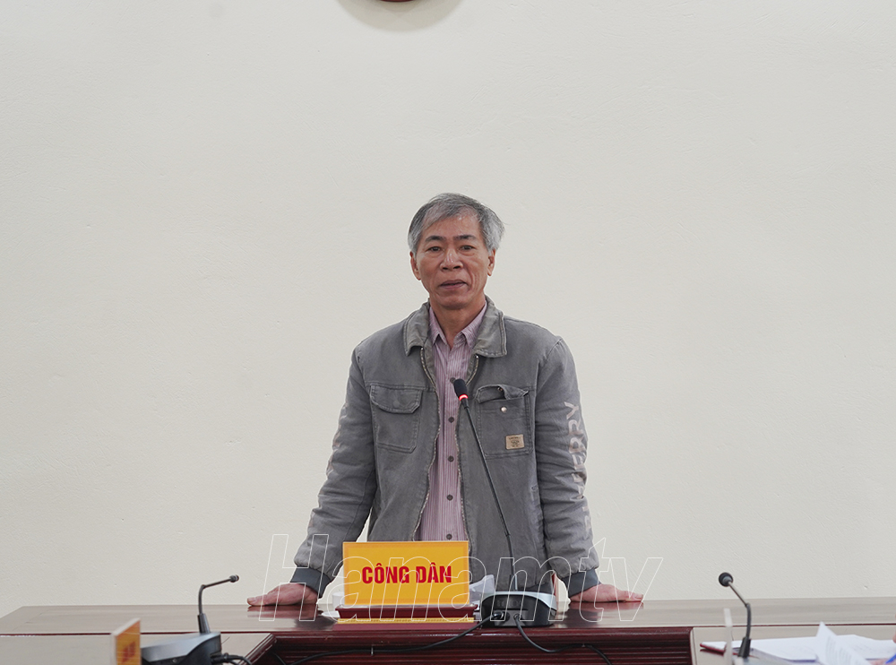 Tại hội nghị, công dân Nguyễn Văn Hùng (trú tại Tổ dân phố Đồng Văn, phường Đồng Văn, thị xã Duy Tiên) đề nghị cơ quan có thẩm quyền xem xét, giải quyết cấp Giấy chứng nhận quyền sử dụng đất (QSDĐ) cho gia đình ông đúng với phần diện tích đất của ông Nguyễn Văn Phất (bố đẻ ông Hùng) để lại.