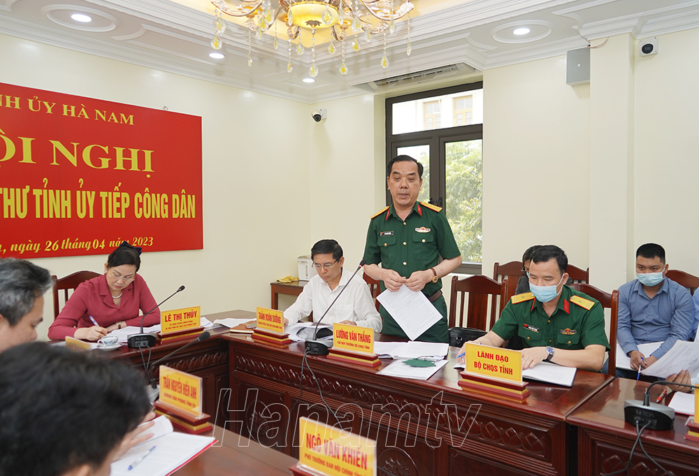 Tại buổi tiếp, công dân Ngô Quốc Trưởng, thôn Thử Hoà, xã Thanh Tân, huyện Thanh Liêm phản ánh về việc bố đẻ ông là quân nhân Ngô Quốc Tái (sinh năm 1927 tại thôn Tràng, xã Thanh Tân, huyện Thanh Liêm) tham gia kháng chiến chống Pháp, hy sinh ngày 20/7/1954 tại Mặt trận Tây Nam Ninh Bình nhưng đến nay chưa được công nhận là liệt sỹ và chưa được cấp Bằng Tổ quốc ghi công. Công dân đề nghị các cấp có thẩm quyền xem xét công nhận liệt sỹ và cấp Bằng Tổ quốc ghi công cho bố ông.