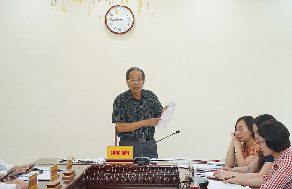 Ông Lê Văn Dư, Tổ dân phố Chuông, phường Duy Minh (thị xã Duy Tiên) trình bày kiến nghị tại buổi tiếp công dân.