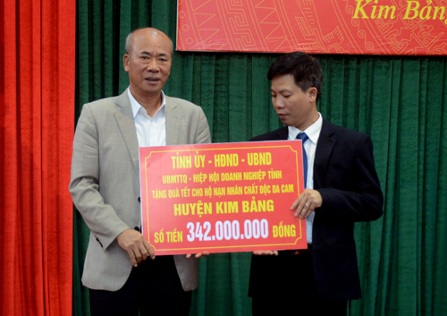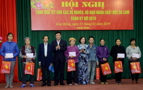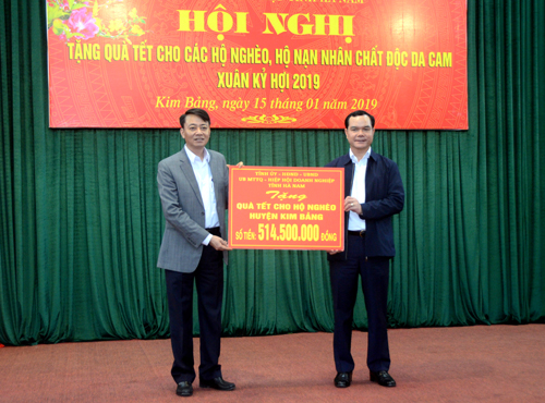Đồng chí Bí thư Tỉnh ủy Nguyễn Đình Khang tặng quà Tết cho các hộ nghèo, hộ nạn nhân chất độc da cam huyện Kim Bảng