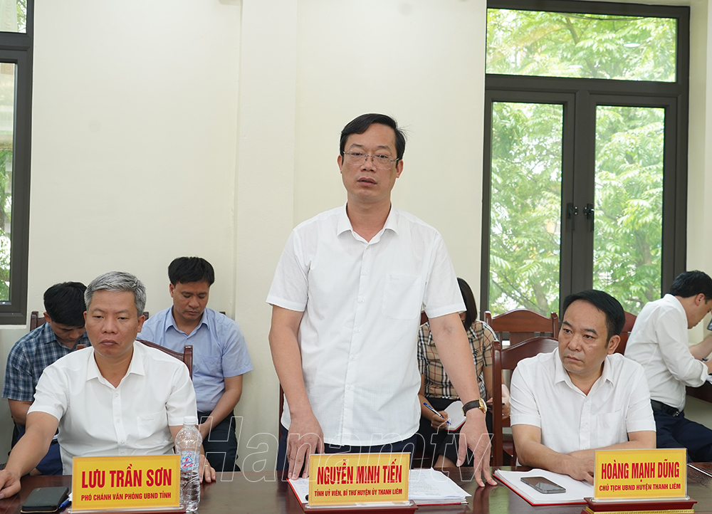 Bí thư Huyện ủy Thanh Liêm Nguyễn Minh Tiến phát biểu tại hội nghị.