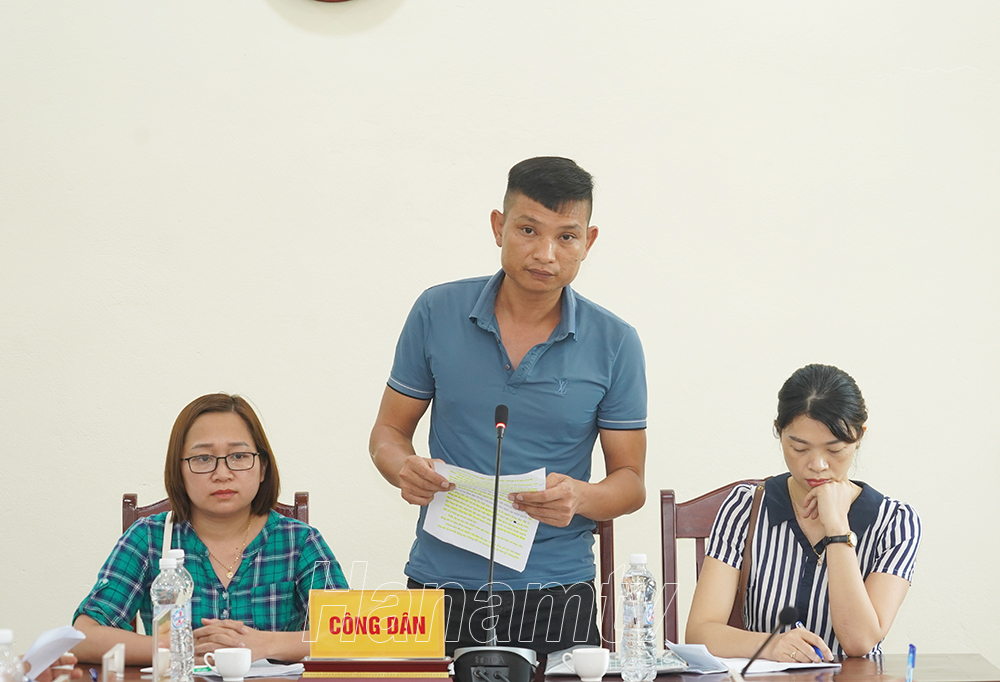 Các công dân mua đất tại Dự án Khu nhà ở phục vụ Khu Công nghiệp Đồng Văn (thị xã Duy Tiên) trình bày ý kiến tại hội nghị.Các công dân mua đất tại Dự án Khu đô thị Hưng Hòa (huyện Thanh Liêm) trình bày ý kiến tại hội nghị.