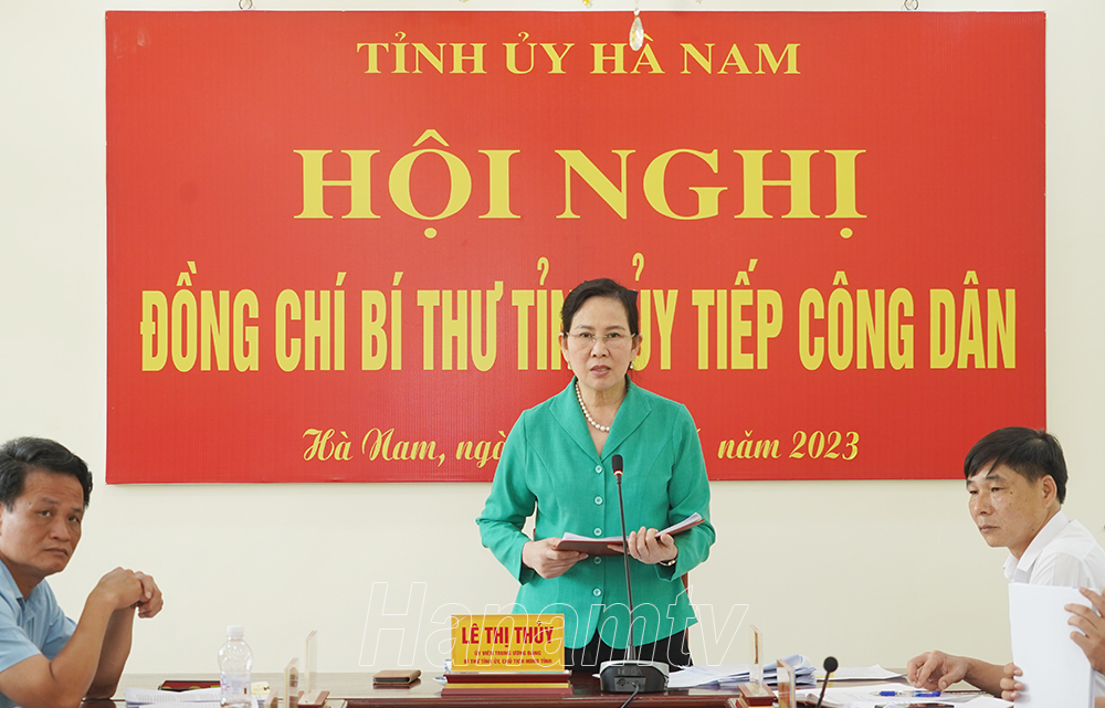 Đồng chí Bí thư Tỉnh ủy Lê Thị Thủy ghi nhận đề nghị của các công dân là chính đáng. Đồng chí chỉ đạo UBND tỉnh, các ngành chức năng tập trung xử lý sớm nhất các thủ tục liên quan theo chức năng của mình; đôn đốc, yêu cầu chủ đầu tư sớm hoàn thiện thủ tục điều chỉnh Dự án. Dự kiến trong tháng 9/2023 sẽ hoàn thiện xử lý dứt điểm vụ việc cho công dân. Văn phòng UBND tỉnh có nhiệm vụ tiếp nhận đơn thư, những vấn đề người dân phản ánh liên quan đến Dự án. Đồng chí Bí thư Tỉnh ủy mong các công dân yên tâm chờ Kết luận chính thức của Thanh tra Chính phủ, làm cơ sở để tỉnh xử lý dứt điểm, đảm bảo quyền lợi cho công dân ổn định cuộc sống.