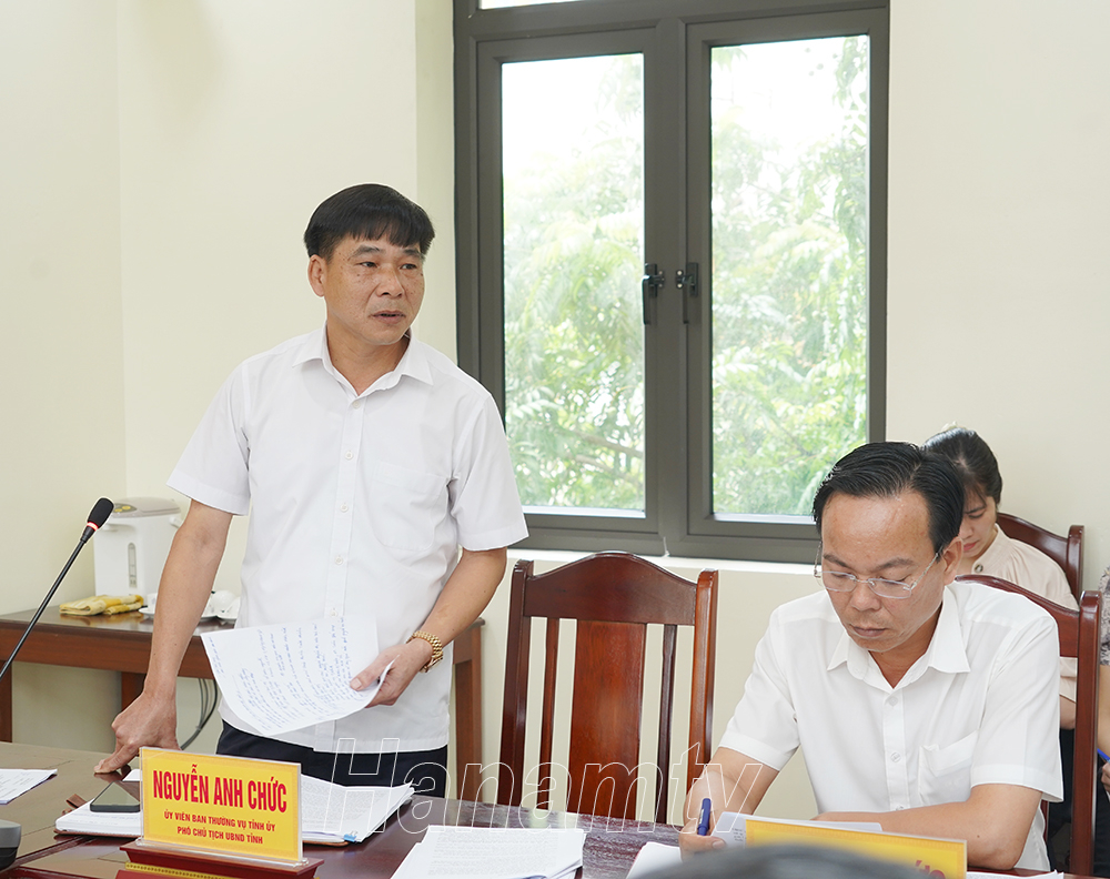 Đồng chí Nguyễn Anh Chức, Ủy viên Ban Thường vụ Tỉnh ủy, Phó Chủ tịch Thường trực UBND tỉnh phát biểu ý kiến tại hội nghị.