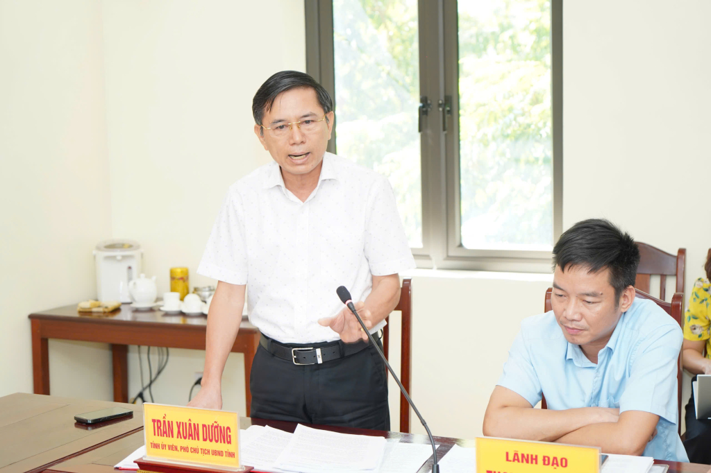 Đồng chí Trần Xuân Dưỡng, Tỉnh ủy viên, Phó Chủ tịch UBND tỉnh phát biểu ý kiến tại hội nghị.Lãnh đạo Sở Tài nguyên và môi trường phát biểu tại hội nghị