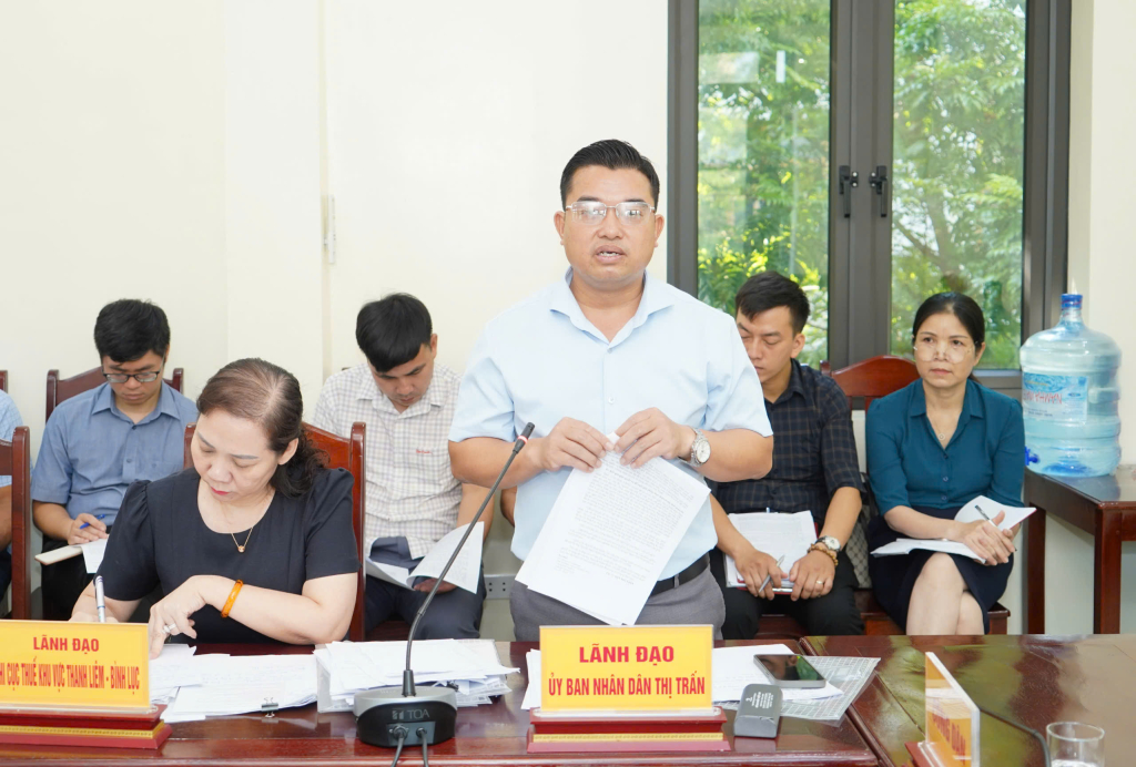 Đại diện UBND Thị trấn Bình Mỹ (Bình Lục) trình bày báo cáo quá trình giải quyết đối với công dân Nguyễn Ngọc Huân.