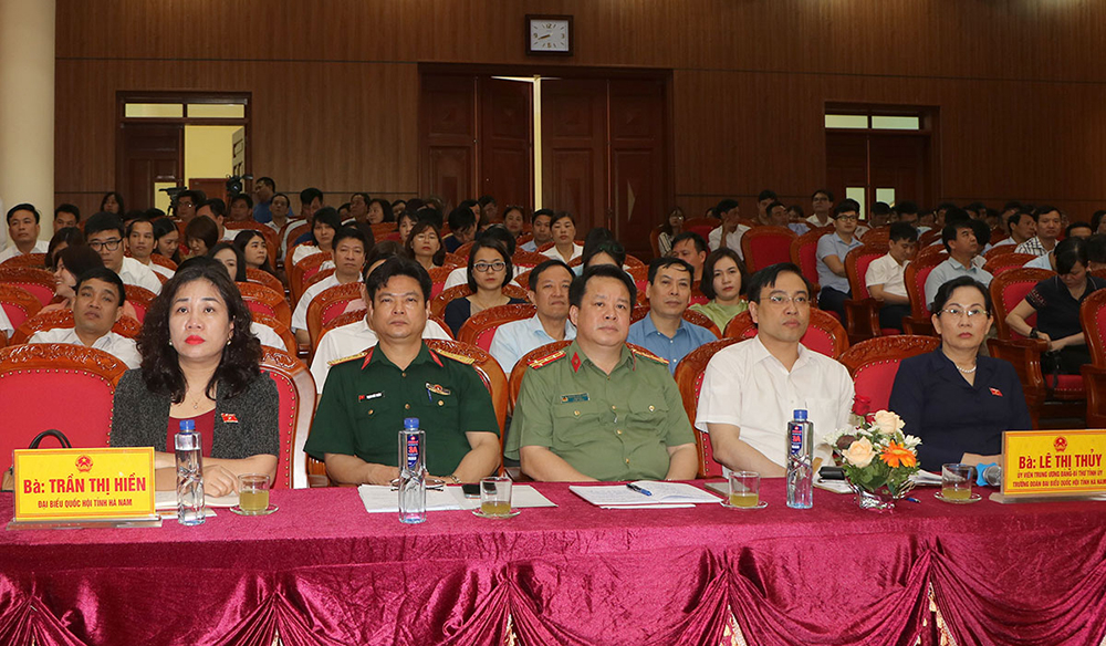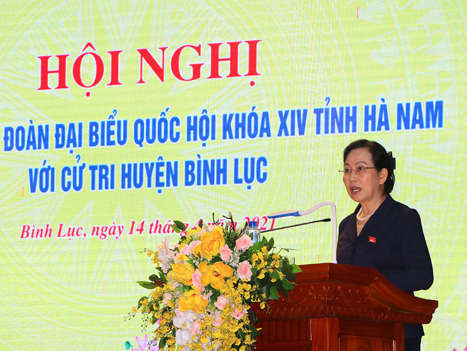 Tiếp tục chương trình tiếp xúc cử tri sau kỳ họp thứ 11 Quốc hội khóa XIV, sáng ngày 14/4, đồng chí Lê Thị Thủy, Ủy viên Trung ương Đảng, Bí thư Tỉnh ủy, Trưởng Đoàn đại biểu Quốc hội (ĐBQH) tỉnh và bà Trần Thị Hiền, Ủy viên Ủy ban Các vấn đề xã hội của Quốc hội, ĐBQH tỉnh đã có buổi tiếp xúc với cử tri huyện Bình Lục.