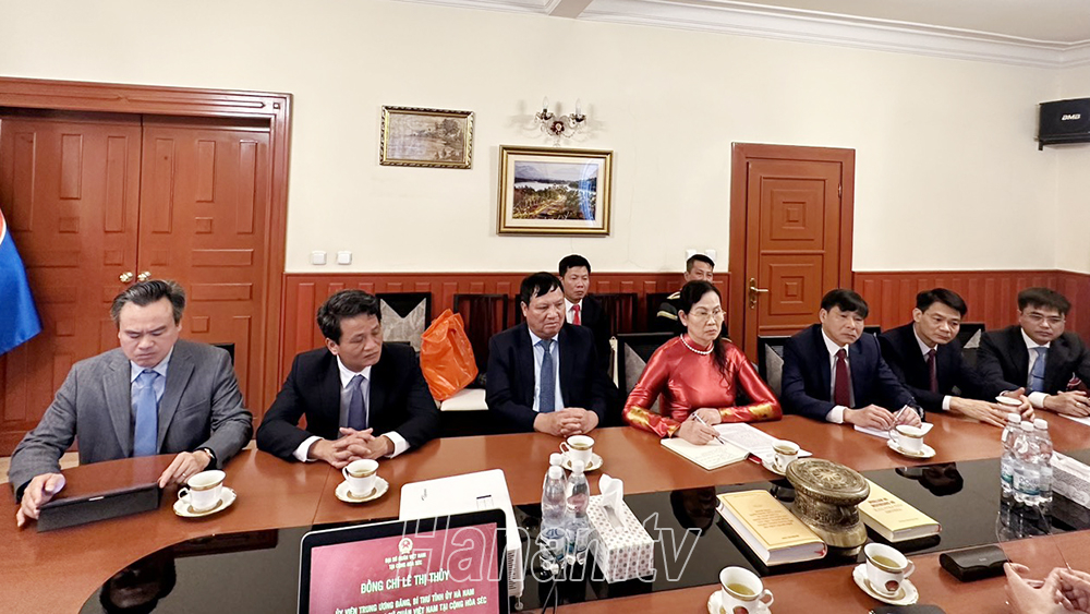 Đồng chí Bí thư Tỉnh ủy Lê Thị Thủy giới thiệu tình hình phát triển KT-XH, môi trường đầu tư kinh doanh của tỉnh Hà Nam với Đại sứ quán Việt Nam tại Cộng hòa Czech.