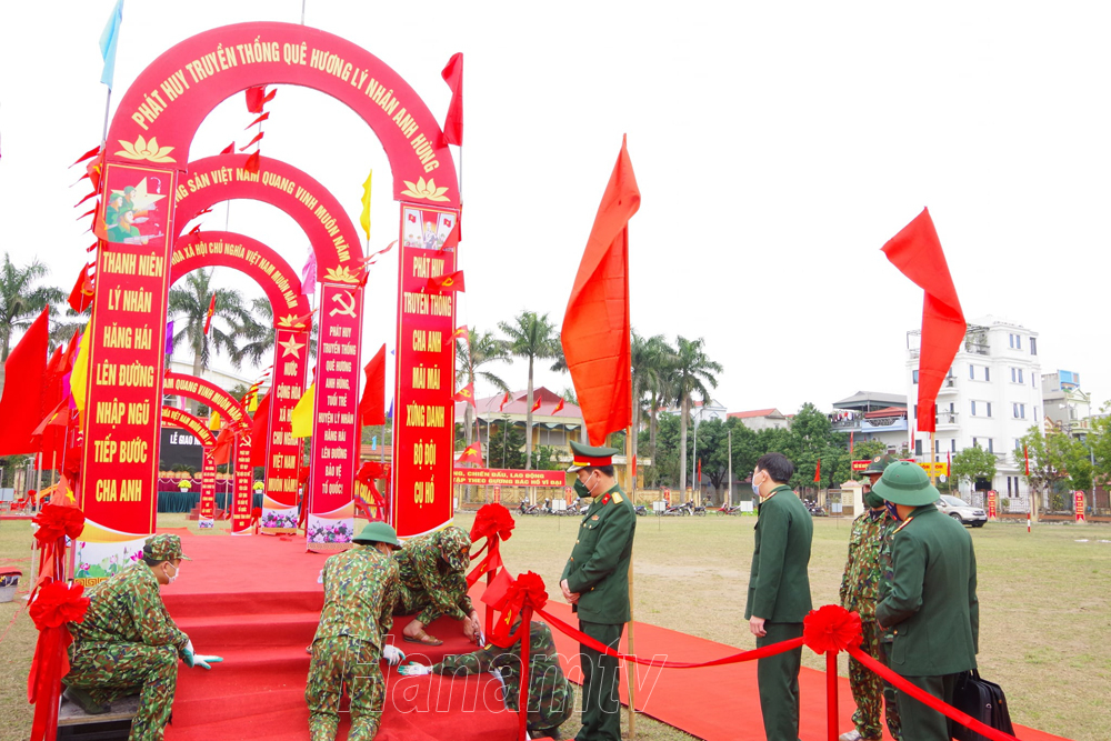 Đồng chí Chỉ huy trưởng Bộ Chỉ huy Quân sự tỉnh kiểm tra công tác chuẩn bị cho lễ giao nhận quân tại huyện Lý Nhân