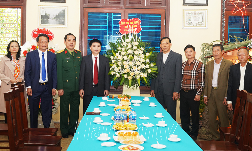 Lãnh đạo Huyện ủy, UBND huyện Lý Nhân tặng hoa và quà chúc mừng Lễ Giáng sinh tại Giáo xứ Vĩnh Đà