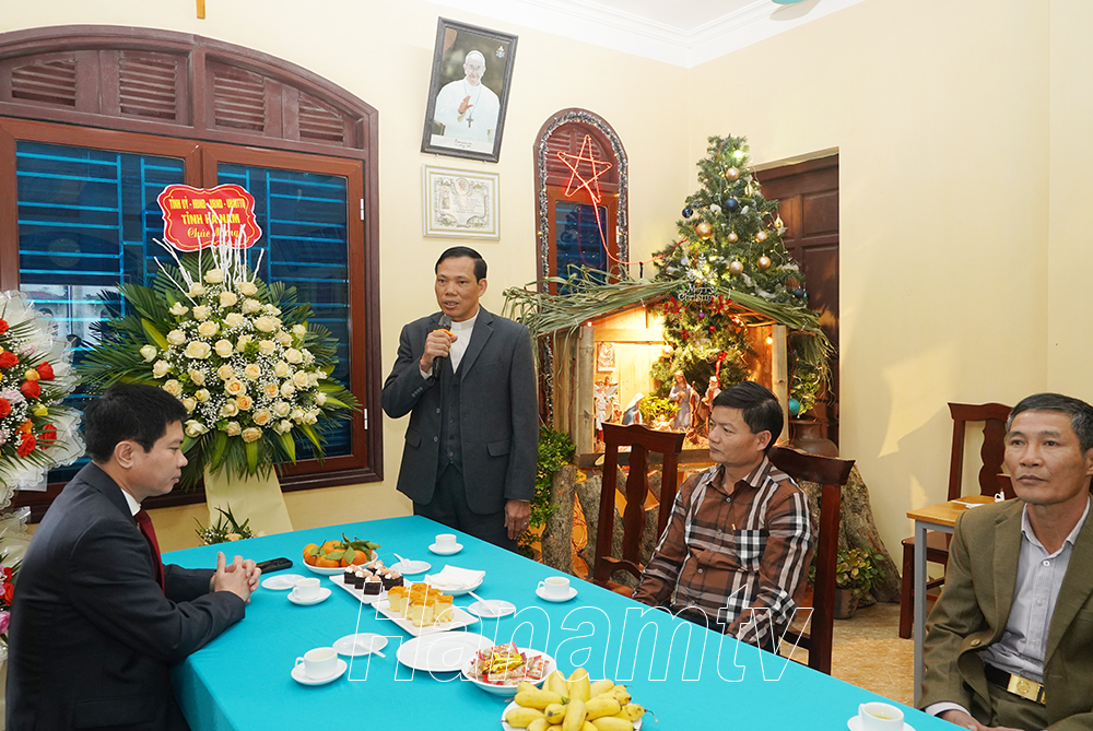 Chúc đồng chí Chủ tịch UBND tỉnh và các đồng chí lãnh đạo tỉnh một mùa Giáng sinh ấm áp, đón xuân mới hạnh phúc bên gia đình, Linh mục Lê Thanh Nghị cũng khẳng định: Với vai trò, trách nhiệm là Quản giáo hạt Lý Nhân, linh mục sẽ tiếp tục tuyên truyền vận động đồng bào công giáo chấp hành tốt các chủ trương, đường đối của Đảng, chính sách pháp luật của Nhà nước, phát huy tinh thần “kính Chúa – yêu nước” tích cực tham gia hưởng ứng và nhân rộng các phong trào thi đua yêu nước, các cuộc vận động do MTTQ các cấp phát động, củng cố khối đoàn kết, cùng với bà con các tôn giáo khác chung sức, đồng lòng xây dựng quê hương ngày càng phát triển.