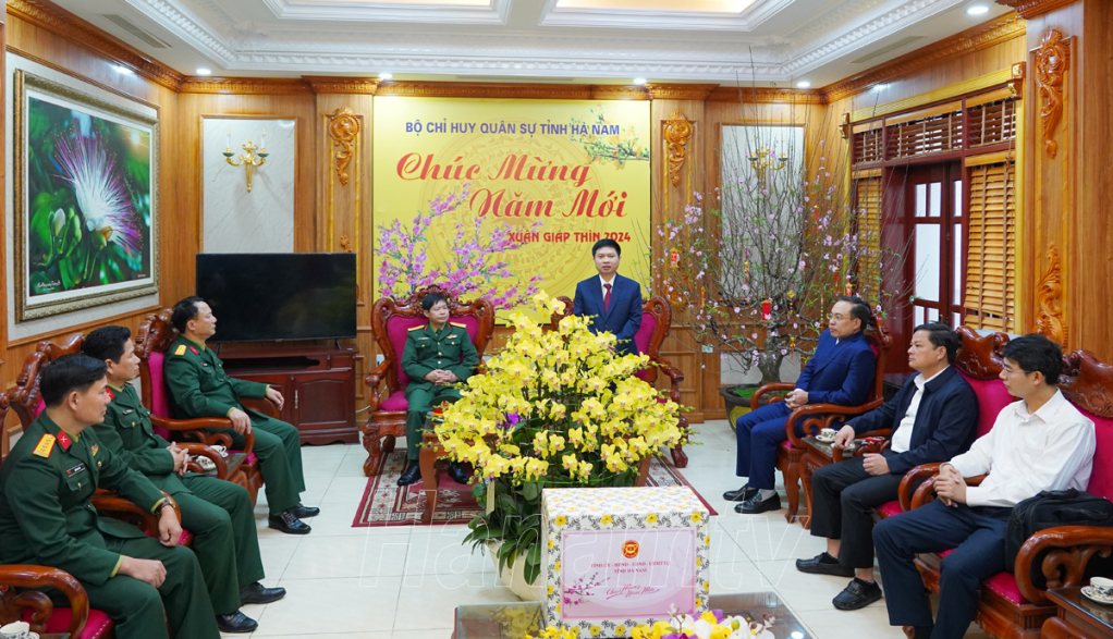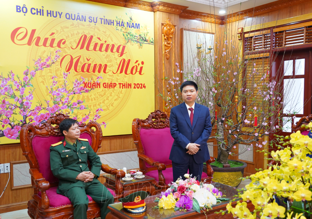 Nhân dịp chuẩn bị đón Xuân Giáp Thìn, sáng 6/2, đồng chí Trương Quốc Huy, Phó Bí thư Tỉnh ủy, Chủ tịch UBND tỉnh, Trưởng đoàn ĐBQH tỉnh đến thăm, chúc Tết cán bộ, chiến sĩ (CBCS) Bộ Chỉ huy Quân sự tỉnh và cán bộ, người lao động Công ty Cổ phần Môi trường và Công trình đô thị Hà Nam, Công ty Điện lực Hà Nam.