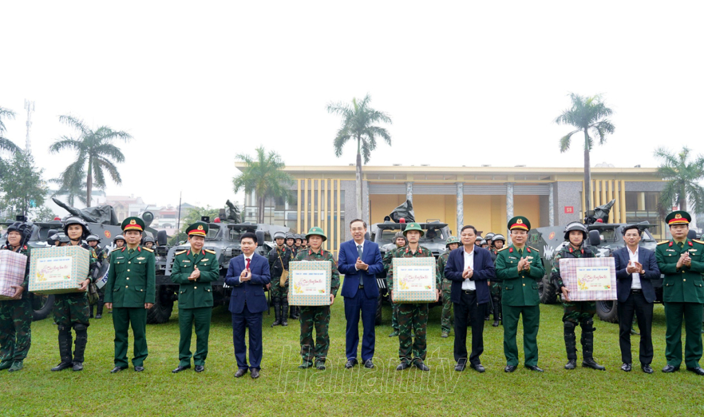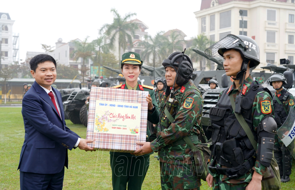 Nhân dịp này, đồng chí Chủ tịch UBND tỉnh đã tặng quà và chúc các cán bộ, chiến sĩ lực lượng vũ trang tỉnh vui xuân, đón Tết Giáp Thìn 2024 vui vẻ, đoàn kết, năm mới khí thế mới, thắng lợi mới, tiếp tục khẳng định vai trò, vị trí quan trọng và đóng góp tích cực vào sự phát triển chung của tỉnh.