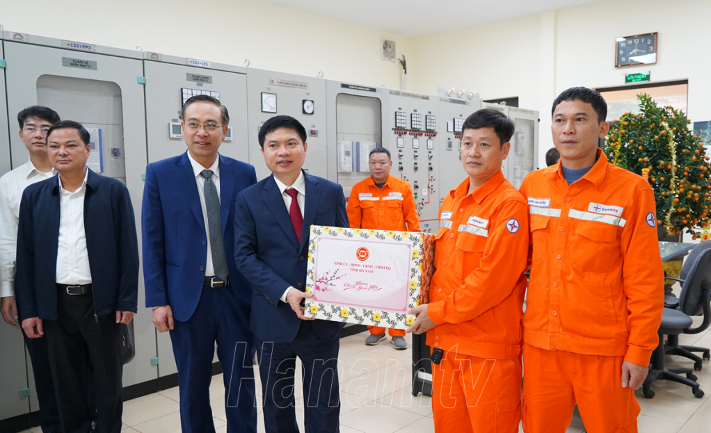 Đồng chí Chủ tịch UBND tỉnh Trương Quốc Huy thăm, động viên, tặng quà Tết cán bộ, người lao động tham gia trực Tết tại Công ty Điện lực Hà Nam.Đồng chí Chủ tịch UBND tỉnh Trương Quốc Huy thăm, động viên, tặng quà Tết cán bộ, người lao động tham gia trực Tết tại Công ty Cổ phần Môi trường và Công trình đô thị Hà Nam