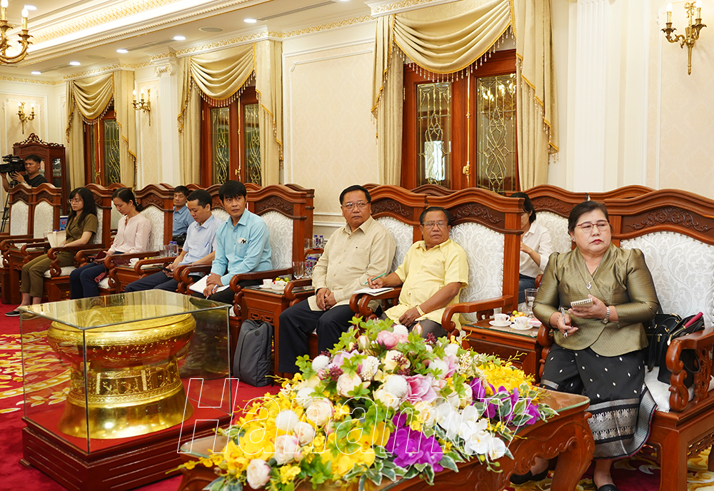 Tại buổi tiếp, đồng chí Chủ tịch UBND tỉnh Trương Quốc Huy đã nhiệt liệt chào mừng và cảm ơn đồng chí Aly Vông Nor Bun Thăm, Ủy viên TW Đảng Nhân dân Cách mạng Lào, Chủ tịch TW Liên hiệp Công đoàn Lào và các đồng chí trong đoàn công tác đã đến thăm tỉnh Hà Nam trong chuyến công tác tại Việt Nam nhân dịp kỷ niệm 60 năm thiết lập mối quan hệ Việt Nam – Lào.
