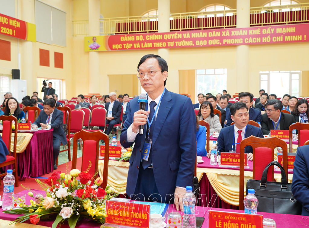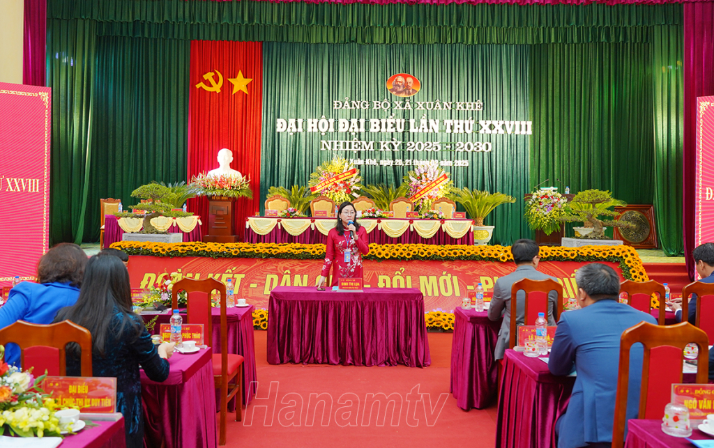 Phát biểu chỉ đạo tại cuộc họp, đồng chí Đinh Thị Lụa, Phó Bí thư Thường trực Tỉnh ủy, Bí thư Đảng uỷ các cơ quan Đảng tỉnh chúc mừng Đảng bộ xã Xuân Khê đã chỉ đạo và tổ chức thành công Đại hội Đảng bộ xã nhiệm kỳ 2025-2030. Đồng thời, ghi nhận, biểu dương, đánh giá cao vai trò lãnh đạo, chỉ đạo tổ chức đại hội điểm cấp xã của BTV Huyện ủy Lý Nhân, BTV Đảng ủy xã Xuân Khê.