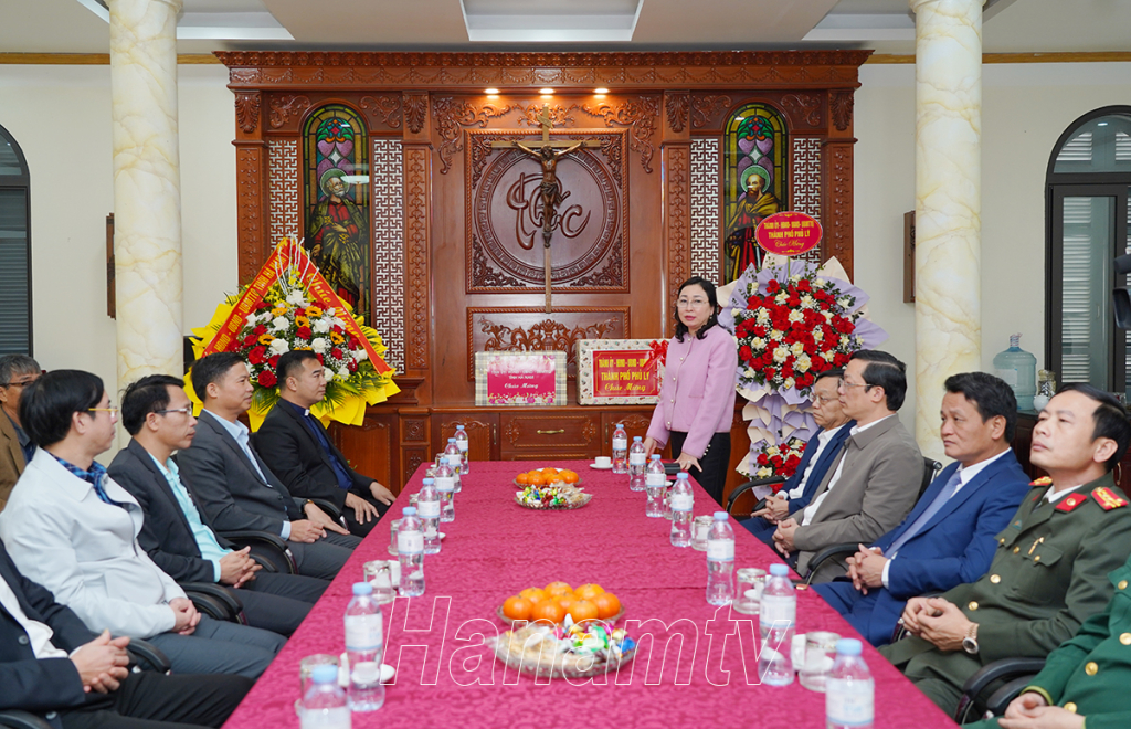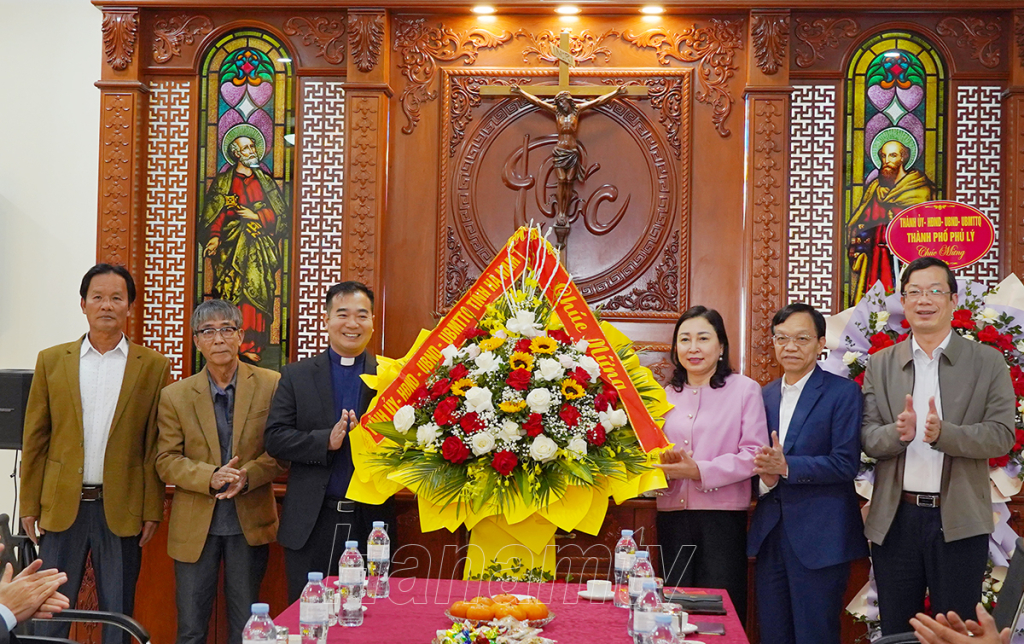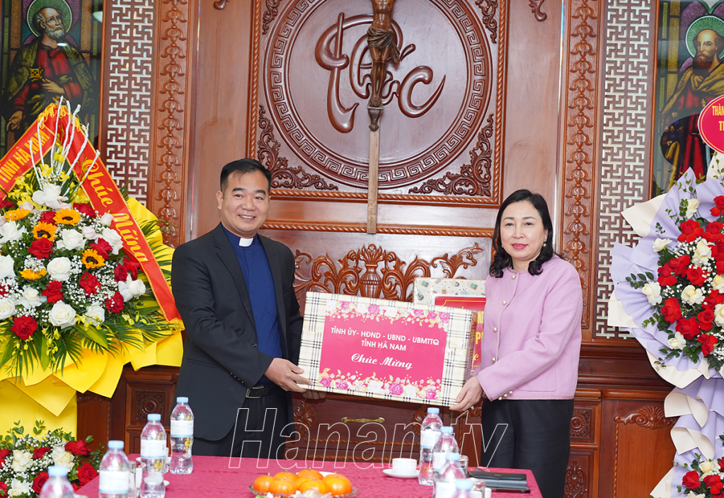 Đồng chí Phó Bí thư Thường trực Tỉnh ủy Đinh Thị Lụa thăm, chúc mừng Giáo xứ Kim Bảng