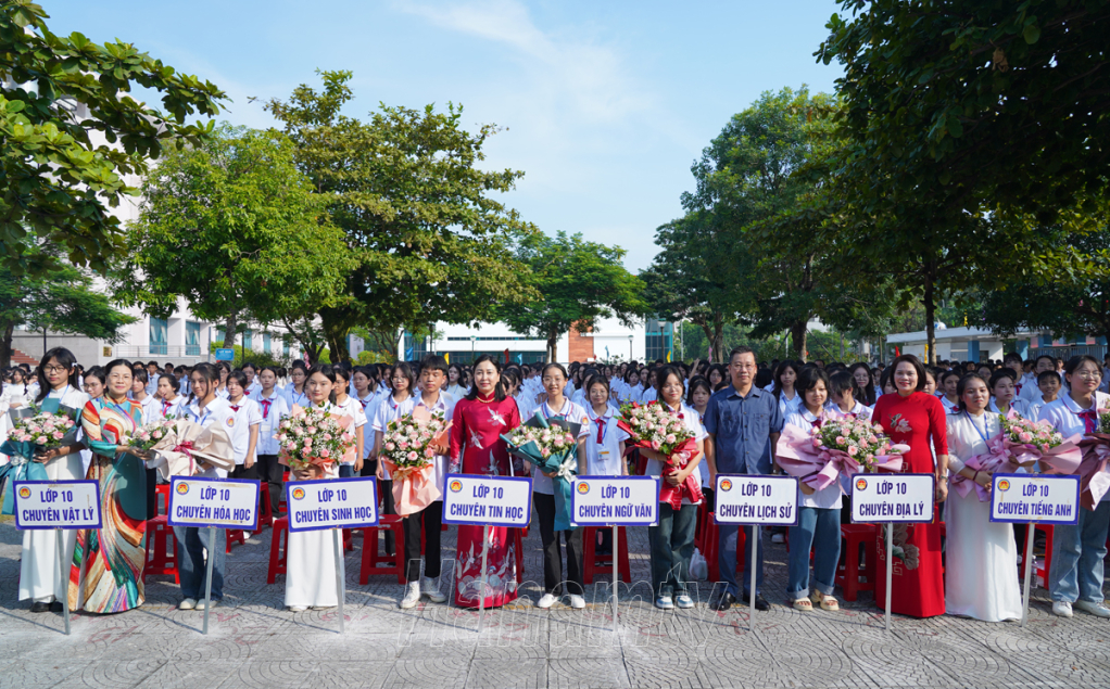 Đồng chí Đinh Thị Lụa, Phó Bí thư Thường trực Tỉnh ủy cùng các đại biểu dự lễ khai giảng năm học mới tại Trường THPT Chuyên Biên Hòa
