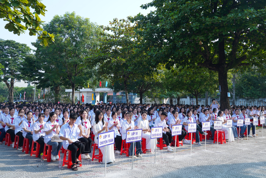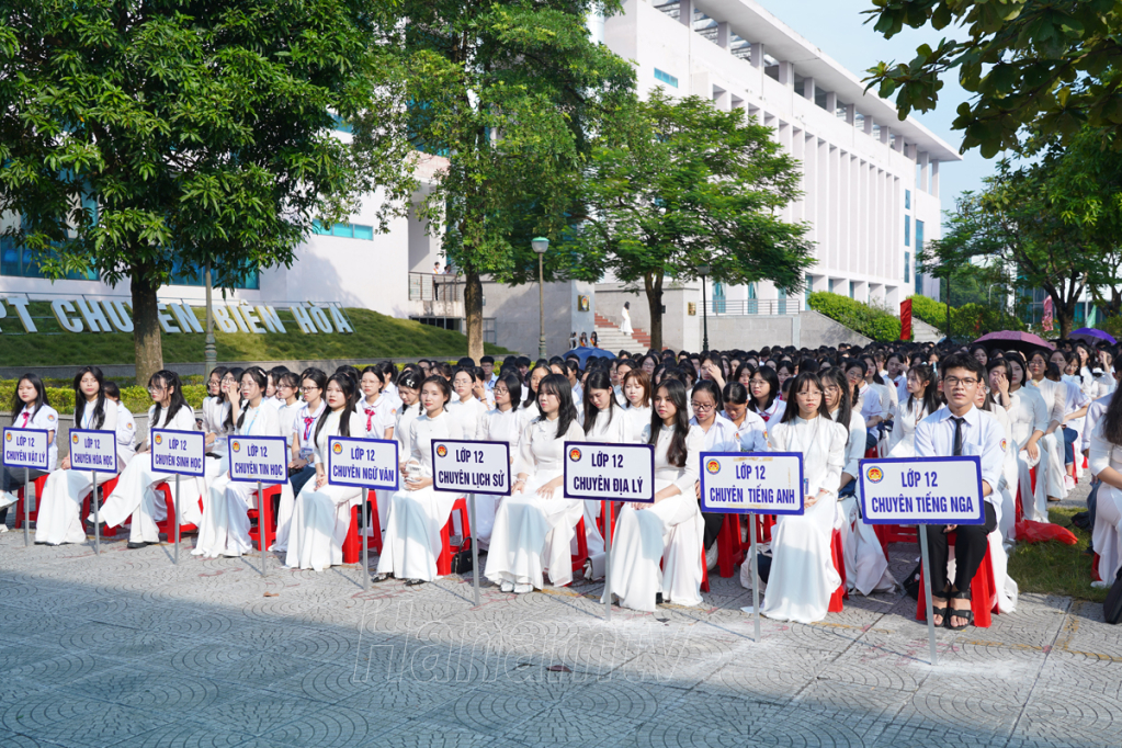 Các em học sinh Trường THPT Chuyên Biên Hòa trong ngày khai giảng năm học mới