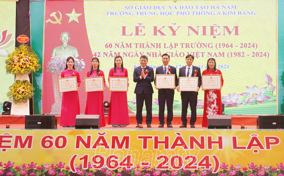 Nhân dịp này, Trường THPT A Kim Bảng được nhận danh hiệu tập thể lao động xuất sắc của Chủ tịch UBND tỉnh; 5 cá nhân được nhận Bằng khen của Bộ trưởng Bộ GD&ĐT.