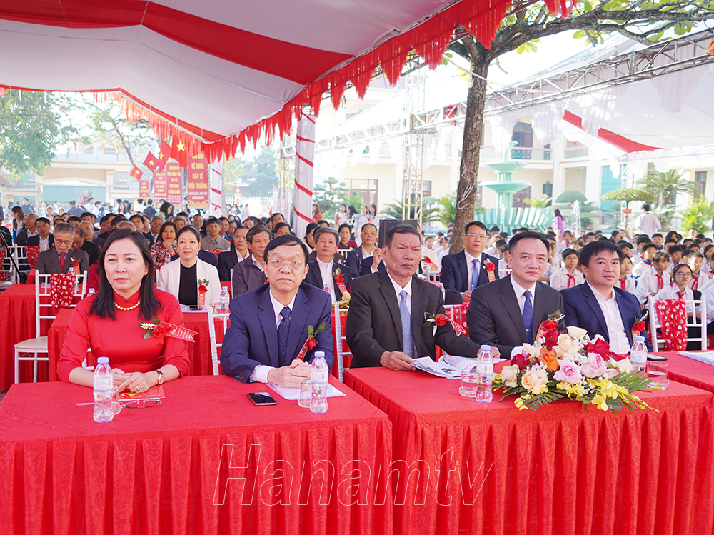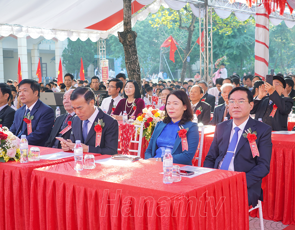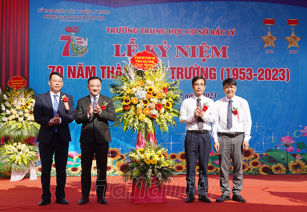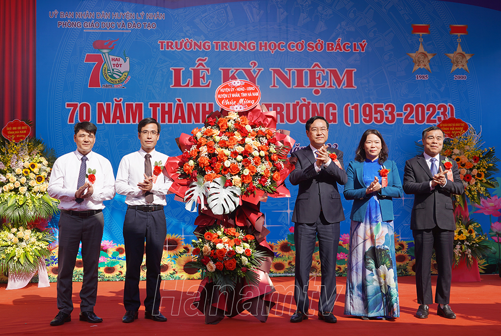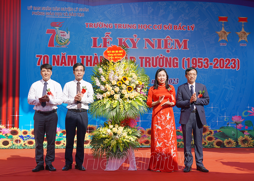 Lãnh đạo Sở Giáo dục và Đào tạo tặng hoa chúc mừng nhà trường.Lãnh đạo huyện Lý Nhân tặng hoa chúc mừng nhà trường.