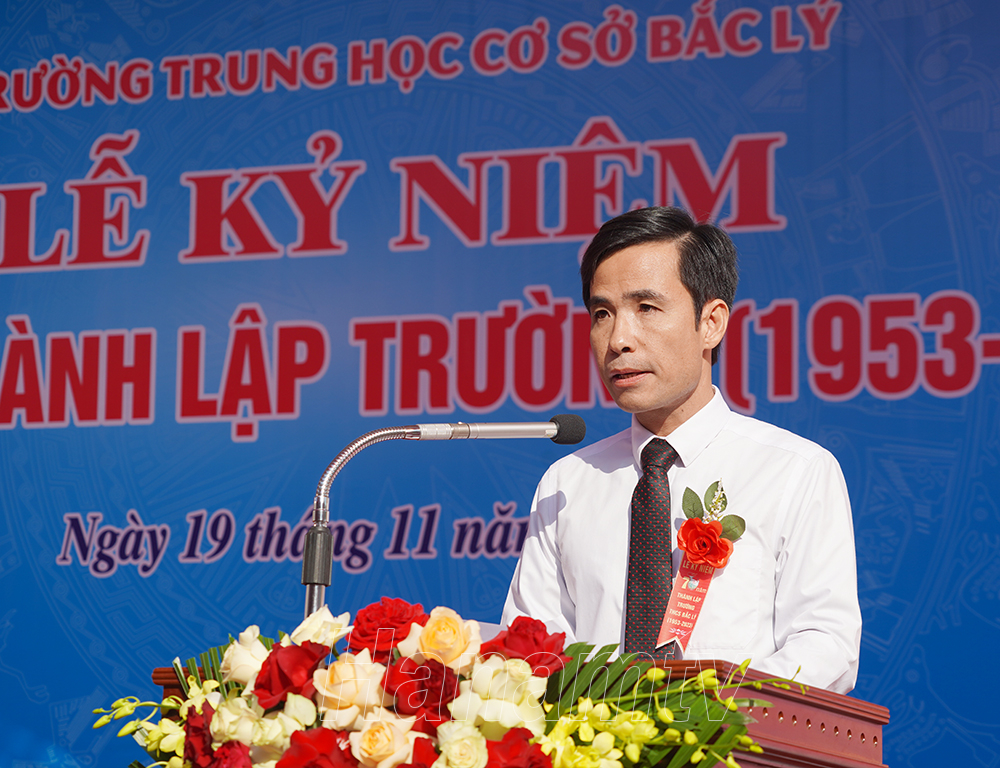 Lãnh đạo nhà trường đọc diễn văn ôn lại chặng đường 70 năm xây dựng và phát triển của Trường THCS Bắc Lý.