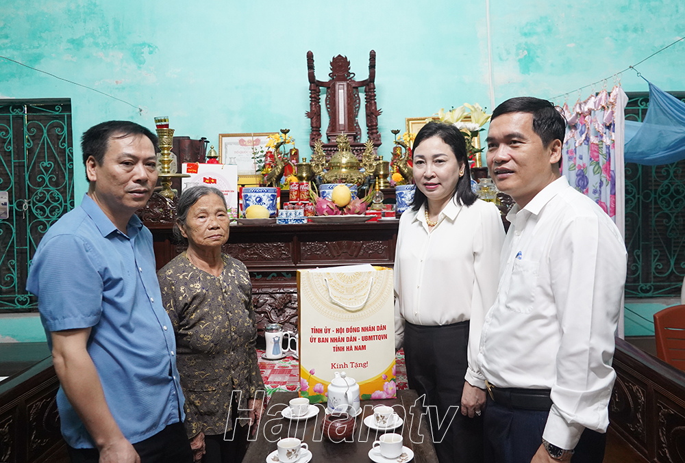 Đồng chí Phó Bí thư Thường trực Tỉnh ủy tặng quà gia đình thương binh Kiều Quang Lợi ở thôn Điệp Sơn, xã Yên Nam.Tặng quà gia đình bà Lê Thị Cận là vợ liệt sỹ Vũ Văn Vinh ở Tổ dân phố Vân Kênh, phường Châu Giang.