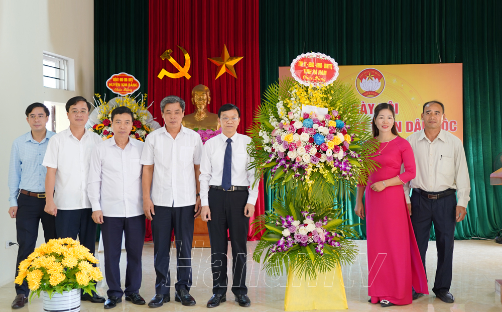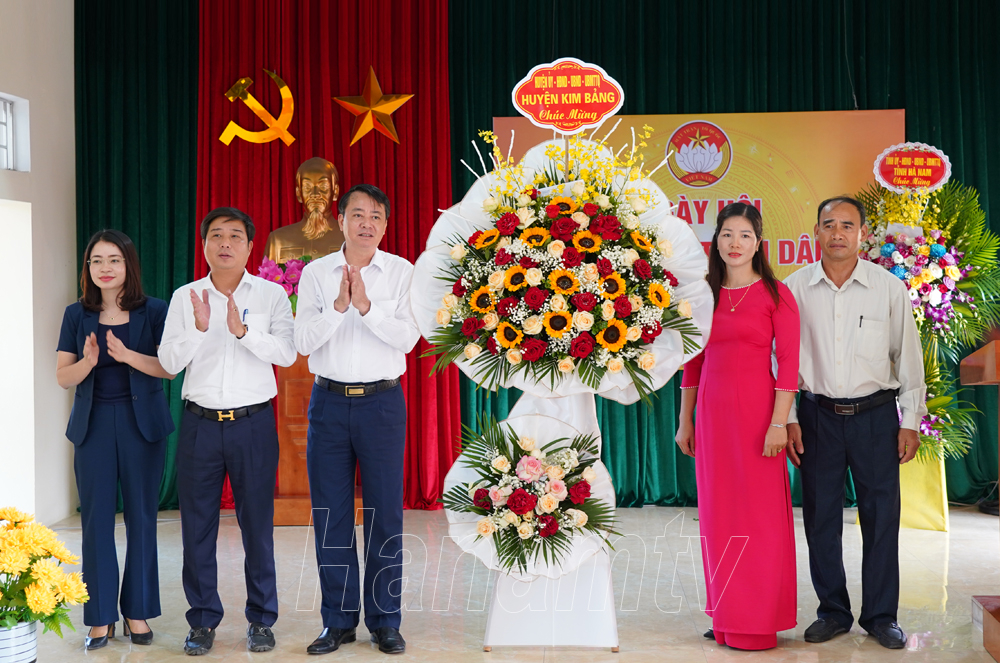 Thay mặt Tỉnh ủy, HĐND, UBND, Ủy ban MTTQ tỉnh, đồng chí Đặng Đình Thoảng, Ủy viên Ban Thường vụ Tỉnh ủy, Trưởng Ban Tổ chức Tỉnh ủy và các đồng chí lãnh đạo một số sở, ban, ngành của tỉnh tặng hoa chúc mừng tại ngày hộiLãnh đạo huyện Kim Bảng tặng hoa chúc mừng tại ngày hội