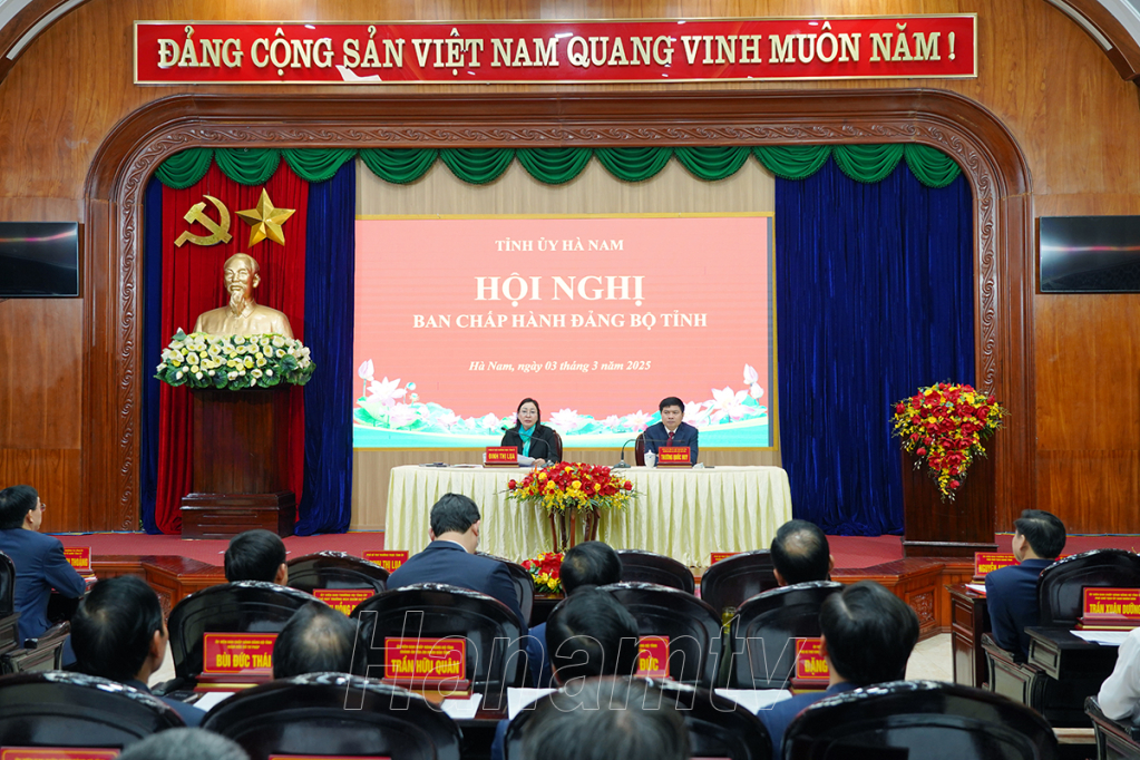Tại hội nghị, BCH Đảng bộ tỉnh đã nghe đồng chí Phó Bí thư Thường trực Tỉnh ủy quán triệt, triển khai Văn bản số 13588-CV/VPTW ngày 28/02/2025 của Văn phòng Trung ương Đảng thông báo ý kiến của Bộ Chính trị về việc bầu chức danh Bí thư Tỉnh ủy Hà Nam khoá XX, nhiệm kỳ 2020 - 2025 và chỉ định tham gia Đảng ủy Quân khu 3 khi Trung ương chuẩn y chức danh Bí thư Tỉnh ủy Hà Nam.