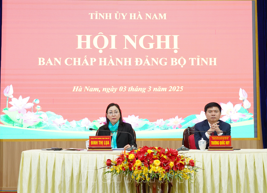 Sáng nay (3/3), Ban Chấp hành (BCH) Đảng bộ tỉnh Hà Nam tổ chức hội nghị thực hiện nội dung về công tác cán bộ; quán triệt, triển khai Kết luận số 127-KL/TW ngày 28/02/2025 của Bộ Chính trị, Ban Bí thư về triển khai nghiên cứu, đề xuất tiếp tục sắp xếp tổ chức bộ máy của hệ thống chính trị và cho ý kiến, cho chủ trương các nội dung KTXH theo thẩm quyền. Dự, chủ trì hội nghị có các đồng chí: Đinh Thị Lụa, Phó Bí thư Thường trực Tỉnh ủy, Bí thư Đảng ủy các cơ quan Đảng tỉnh; Trương Quốc Huy, Phó Bí thư Tỉnh ủy, Chủ tịch UBND tỉnh, Trưởng Đoàn đại biểu Quốc hội (ĐBQH) tỉnh, Bí thư Đảng ủy UBND tỉnh.