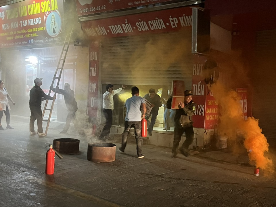 Đồng loạt thực tập phương án chữa cháy và cứu nạn, cứu hộ tại các “Tổ liên gia an toàn PCCC nâng cao”