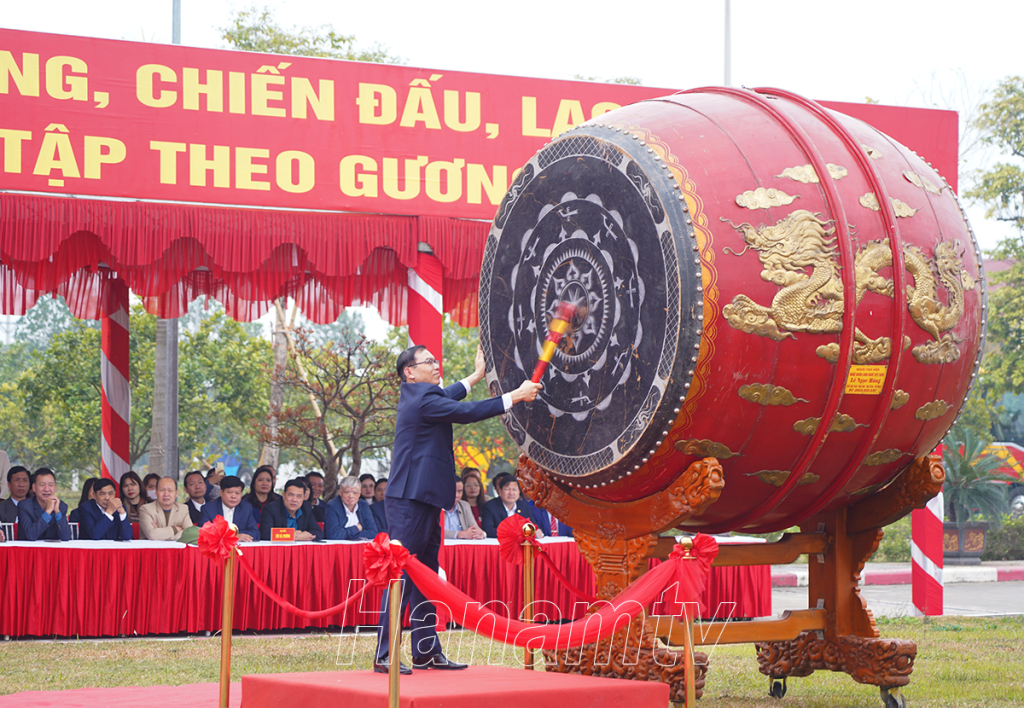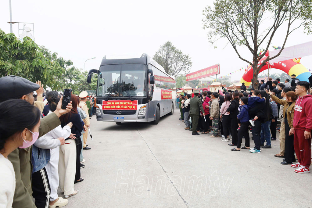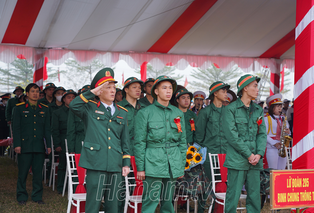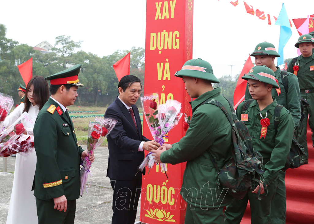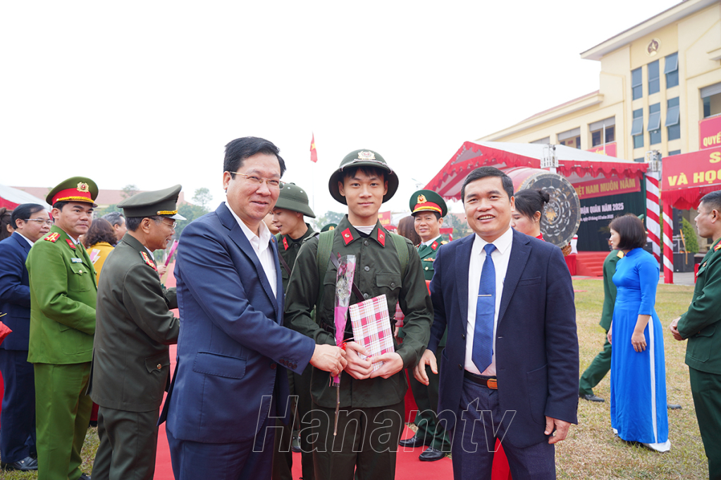 Đồng chí Nguyễn Đức Vượng, Tỉnh ủy viên, Phó Chủ tịch UBND tỉnh tặng hoa, động viên các tân binh huyện Lý Nhân.Đồng chí Bùi Văn Hoàng, Tỉnh ủy viên, Bí thư Huyện ủy Lý Nhân tặng hoa, động viên các tân binh huyện nhà phát huy truyền thống của quê hương, hoàn thành xuất sắc nhiệm vụ trong quân ngũ.Đồng chí Trương Công Khải, Tỉnh ủy viên, Bí thư Huyện ủy Bình Lục tặng hoa, động viên các tân binh.
