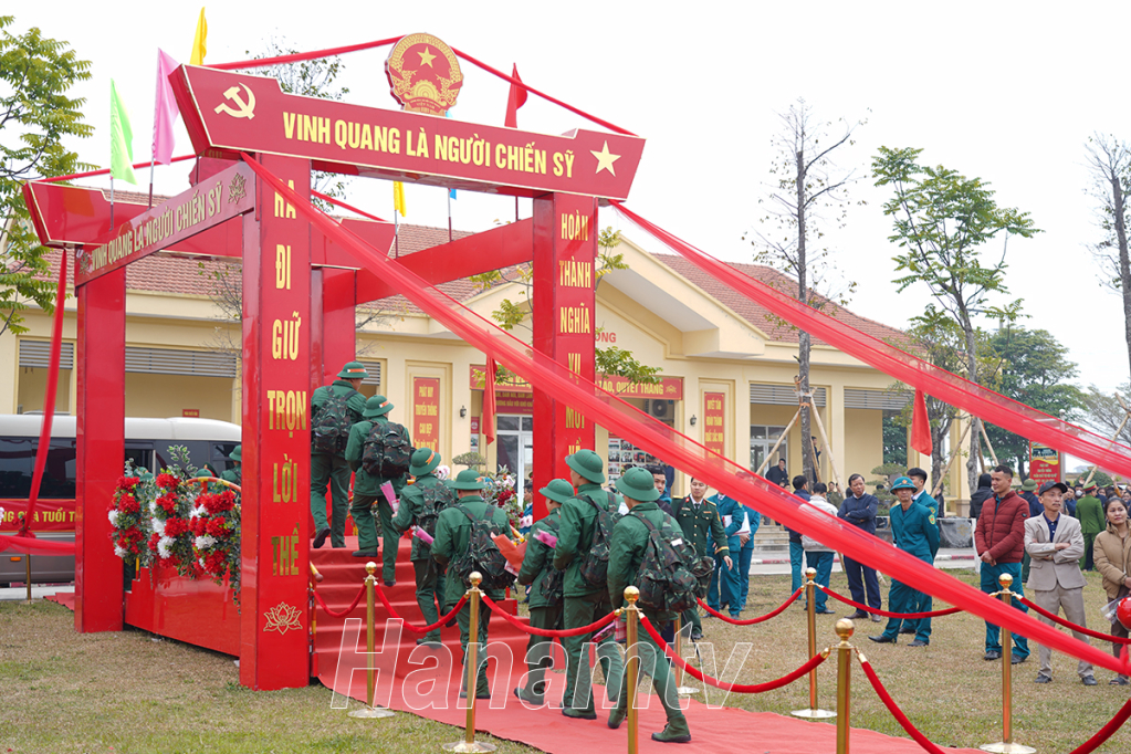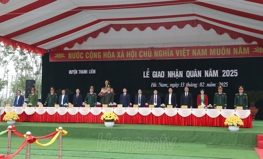 Còn tại huyện Thanh Liêm, trong không khí xúc động, tự hào, đồng chí Chủ tịch UBND tỉnh Trương Quốc Huy cùng các đồng chí lãnh đạo tỉnh, lãnh đạo địa phương đã trực tiếp tặng hoa, dặn dò, động viên các tân binh của huyện Thanh Liêm trước khi bước qua Cầu Vinh quang, lên xe về đơn vị nhập ngũ.