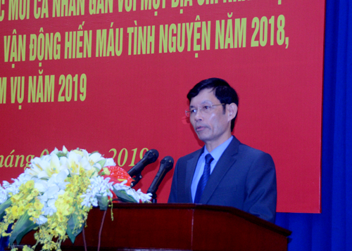 Chiều 03/01/2019, UBND tỉnh tổ chức hội nghị tổng kết 10 năm thực hiện Cuộc vận động “Mỗi tổ chức mỗi cá nhân gắn với một địa chỉ nhân đạo” và tổng kết công tác chữ thập đỏ, công tác vận động hiến máu tình nguyện năm 2018. Dự hội nghị có các đồng chí Trần Quốc Hùng - Ủy viên Đảng đoàn, Phó Chủ tịch Trung ương Hội Chữ thập đỏ Việt Nam; Bùi Quang Cẩm – Tỉnh ủy viên, Phó Chủ tịch UBND tỉnh, Trưởng Ban Vận động Hiến máu tình nguyện tỉnh.