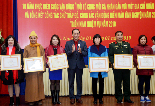 Nhân dịp này, nhiều tập thể, cá nhân có thành tích xuất sắc trong 10 năm thực hiện Cuộc vận động “Mỗi tổ chức mỗi cá nhân gắn với một địa chỉ nhân đạo” và công tác vận động hiến máu tình nguyện năm 2018 được Trung ương Hội, UBND tỉnh, Viện huyết học truyền máu TW, Hội chữ thập đỏ tỉnh khen thưởng./.