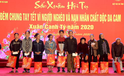 Tối 5/1, tại Nhà văn hóa trung tâm tỉnh, Tỉnh ủy, HĐND, UBND, Ủy ban MTTQ Việt Nam tỉnh Hà Nam tổ chức chương trình “Sắc xuân hội tụ - Đêm chung tay Tết vì người nghèo và nạn nhân chất độc da cam Xuân Canh Tý năm 2020”.