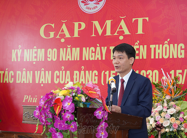 Đồng chí Nguyễn Đức Toàn, Ủy viên Ban Thường vụ, Trưởng Ban Dân vận Tỉnh ủy trình bày diễn văn ôn lại truyền thống 90 năm công tác dân vận của Đảng Tại buổi gặp mặt, đồng chí Nguyễn Đức Toàn, Ủy viên Ban Thường vụ, Trưởng Ban Dân vận Tỉnh ủy đã trình bày diễn văn nêu lại bối cảnh lịch sử dẫn tới sự ra đời và sự phát triển công tác dân vận của Đảng.