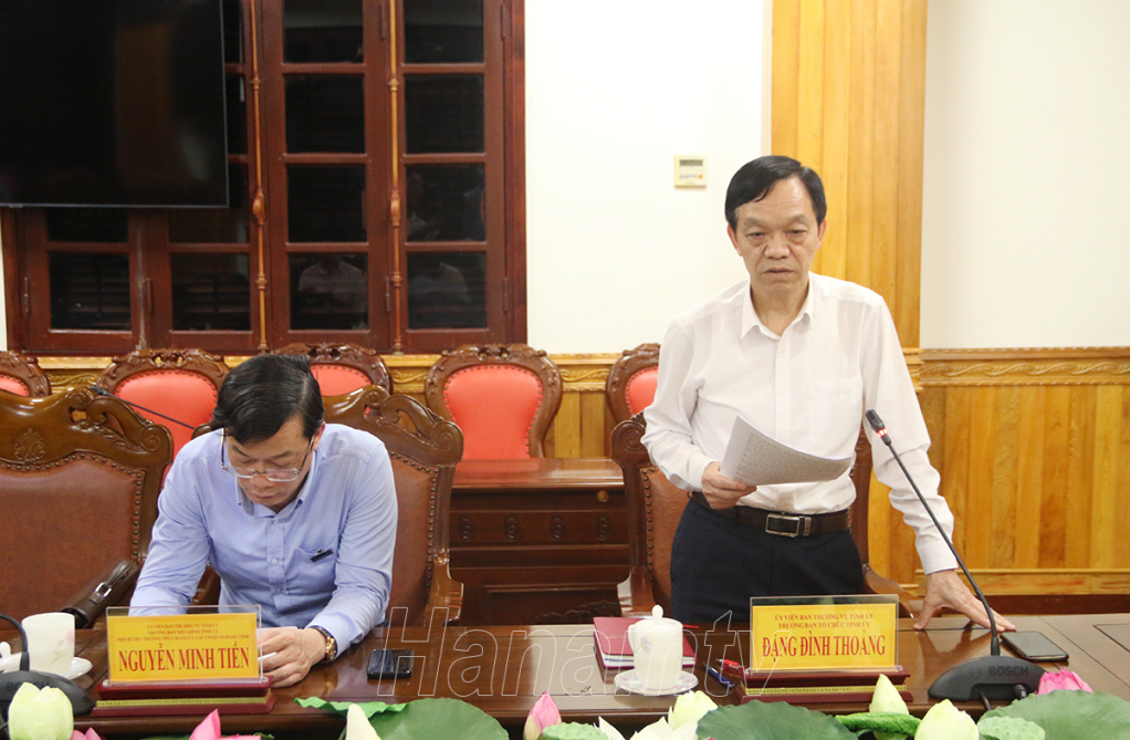 Đồng chí Đặng Đình Thoảng, Ủy viên BTV Tỉnh ủy, Trưởng Ban Tổ chức Tỉnh ủy phát biểu tại hội nghị.