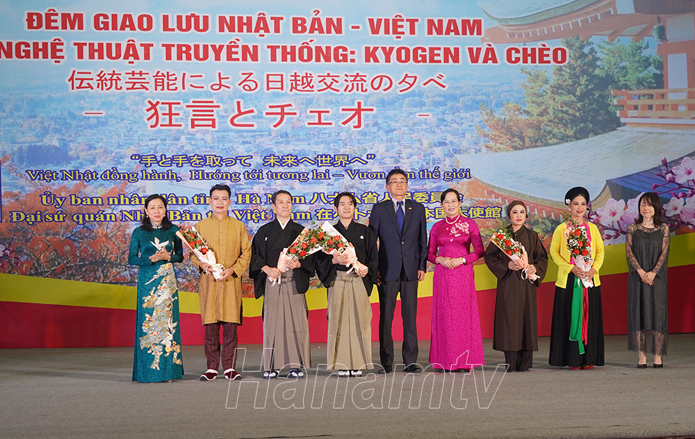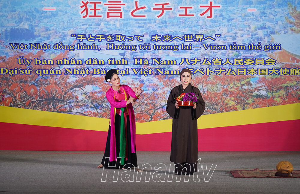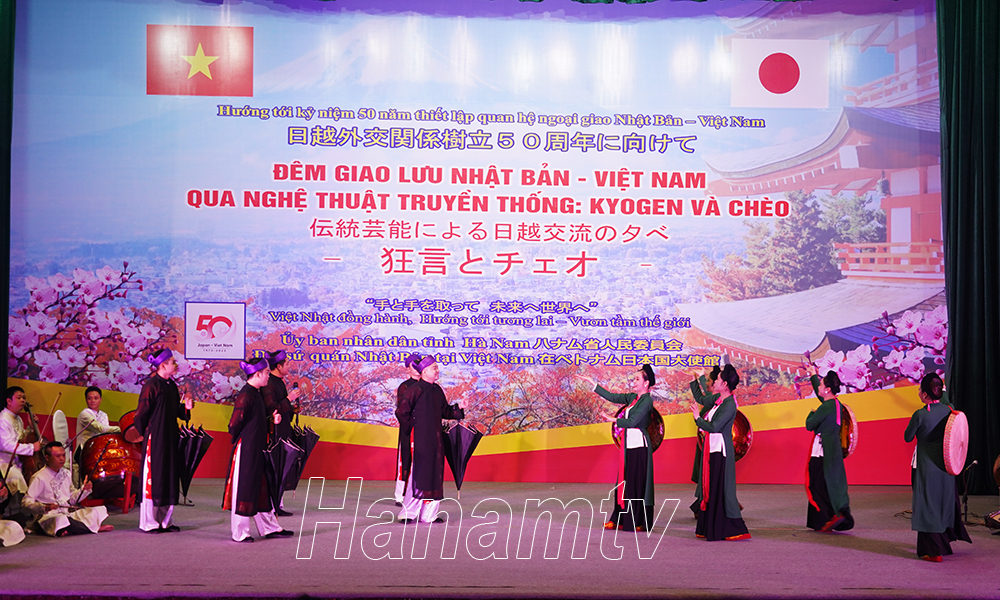 Tối 27/11, tại Nhà văn hoá Trung tâm tỉnh Hà Nam, UBND tỉnh Hà Nam phối hợp với Đại sứ quán Nhật Bản tại Việt Nam tổ chức Chương trình giao lưu nghệ thuật truyền thống Nhật Bản - Việt Nam qua nghệ thuật truyền thống: Kyogen và nghệ thuật Chèo.