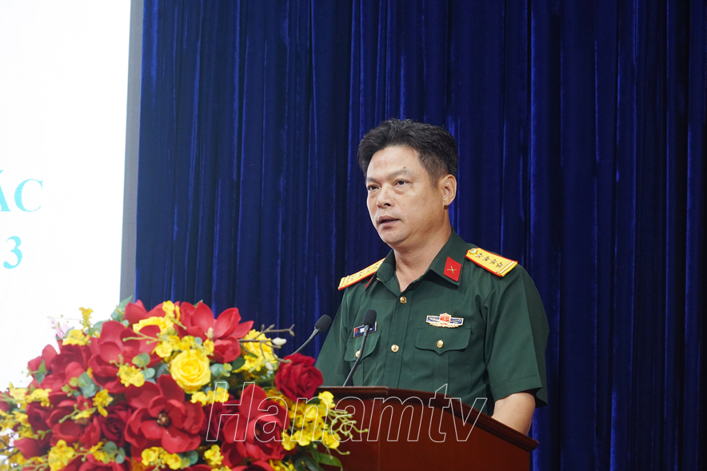 Lãnh đạo Bộ CHQS tỉnh phát biểu tham luận tại hội nghị.