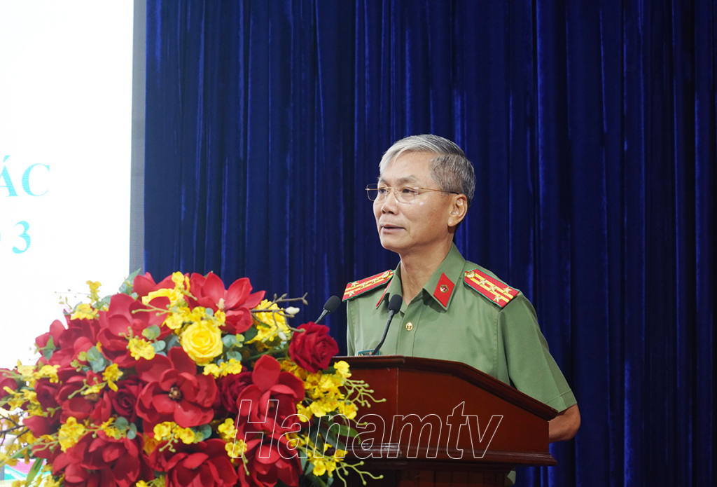 Lãnh đạo Công an tỉnh phát biểu tham luận tại hội nghị.
